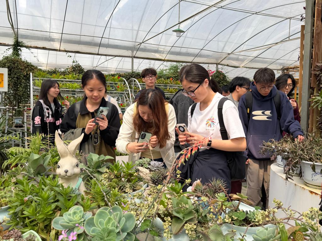 研学过程中,学子们沿着园区定制线路,先后探访中草药园、生态大道、海棠园、植物科技馆、5G草业馆五大核心点位。在中草药园,大家在工作人员指引下辨识药用植物,了解其生长习性与药理价值;生态大道与海棠园里,春日盛景与植被养护知识相融,学子们细致观察植物生长状态,记录生态保护实践成果。植物科技馆与5G草业馆内,前沿农林科技让学子们开阔眼界,从特色植物培育技术到5G技术在草业种植中的应用,大家认真聆听讲解、积极交流探讨,将课堂理论与实践应用深度结合。