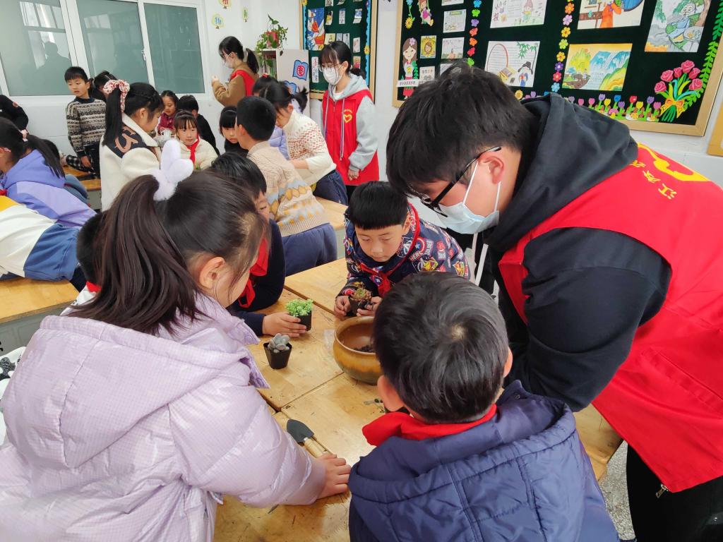 为了科普农业知识,激发孩子们的环保意识和动手能力,2023年3月16日下午,江苏省作物学会组织志愿服务团前往句容市实验小学开展了“大手拉小手,共赴春日之约”多肉组盆活动,带领小朋友们从自身做起,争做护绿小使者。