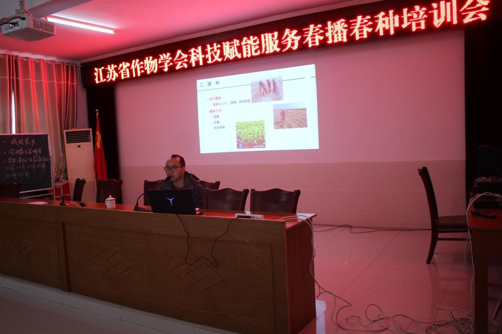 阳春三月,万物复苏,正值春耕春播春管的关键时节,为切实做好农业科技服务,2023年3月29日,江苏省作物学会组织的由党员组成的“亚夫科技服务团队”一行在学会副秘书长、团队首席专家杨宝林教授带领下,前往句容市边城镇开展了科技赋能服务春耕春管专项助农培训,句容市边城镇大华村农技干部、种粮村民共计80余人参加了此次培训。