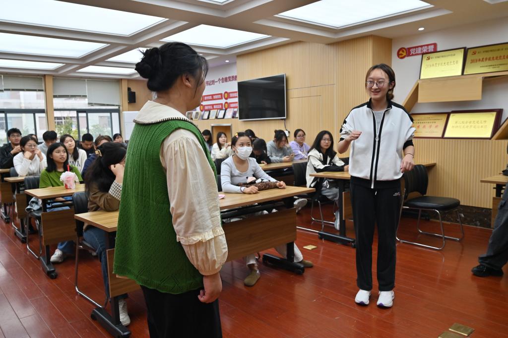 在“你划我猜”"活动中,同学们被分为若干小组,每组选出一位选手负责比划与粮食相关的词汇,另一位成员则根据比划者的肢体语言和创意表达猜测词汇。从“小麦”到“面包”,从“耕种”到“丰收”一个个与粮食相关的词汇在同学们的欢声笑语中传递开来。在粮食知识竞赛环节中,同学们积极参与、争先抢答,现场气氛紧张而热烈,展现出扎实的粮食知识储备和出色的应变能力。帆布袋涂鸦活动中,大家拿起画笔、搭配喜爱的颜色,在白色的帆布袋上自由挥洒创意。他们以粮食为灵感,绘制出栩栩如生的玉米、水稻等图案;有的则以农民为主题,用画笔将耕种与丰收的景象勾勒在帆布袋上,绘出了节约的风尚和精神。