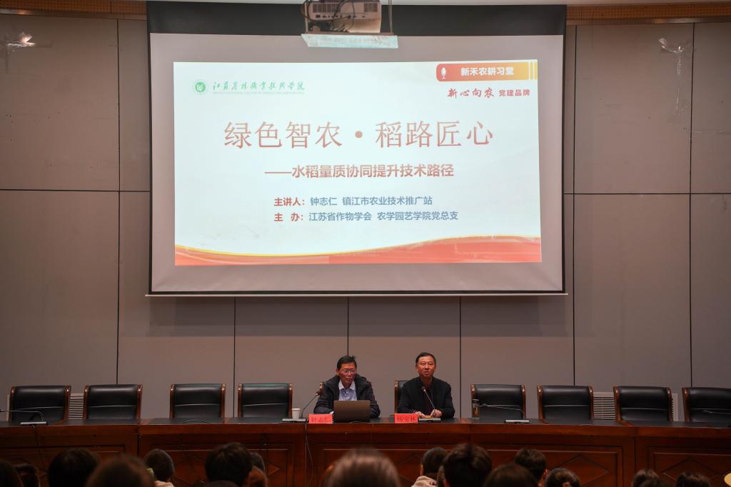 为深入服务江苏省农业现代化发展大局,助力镇江市优质稻米产业提升核心竞争力,2025年10月30日,江苏省作物学会在农林学院举办“水稻量质协同提升技术路径”专题讲座。活动特邀镇江市农业技术推广站站长钟志仁担任主讲。江苏省作物学会秘书长杨宝林教授主持。