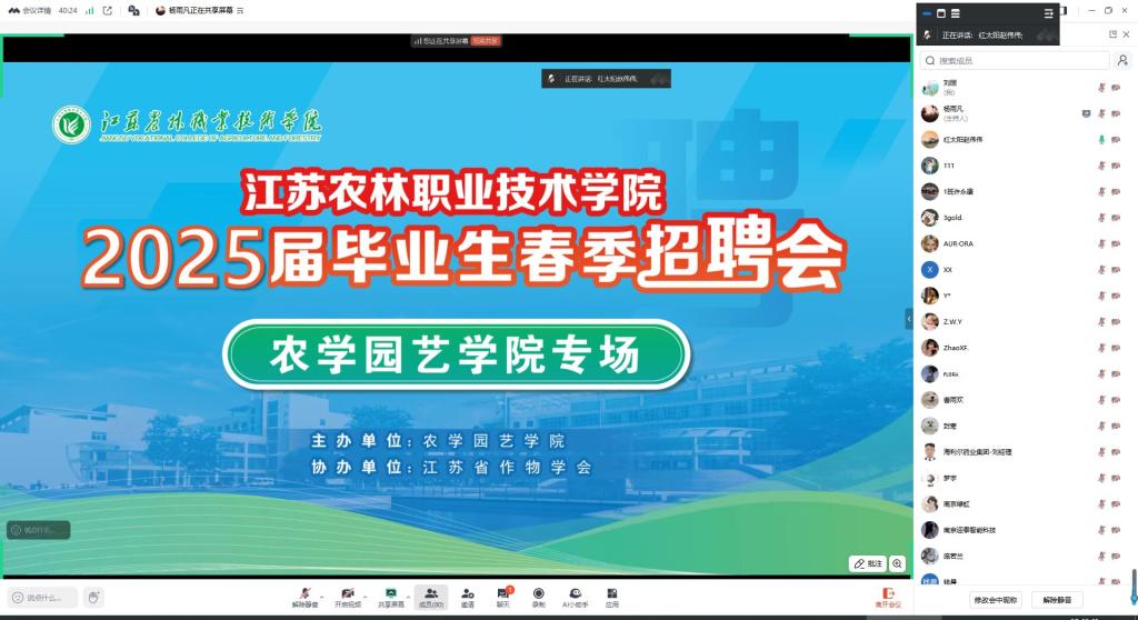 为了给毕业生提供优质的就业服务和广阔的就业渠道,3月23日,江苏省作物学会联合理事长单位举办2025届毕业生春季网络招聘会,海利尔药业集团股份有限公司、江苏百阳垦生物技术有限公司等14家企业通过腾讯会议进行招聘宣讲。