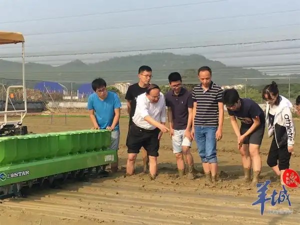 这张照片的拍摄者、华农工程学院硕士研究生导师、副研究员王在满回忆道,在那个疫情严峻的特殊春耕季节,为打赢“抗疫情、促生产、保供应”攻坚战,罗老师带队驱车几百公里,到广东廉江指导农民的水稻精量穴直播工作,为节省时间,他提出在田头吃个盒饭就行了。